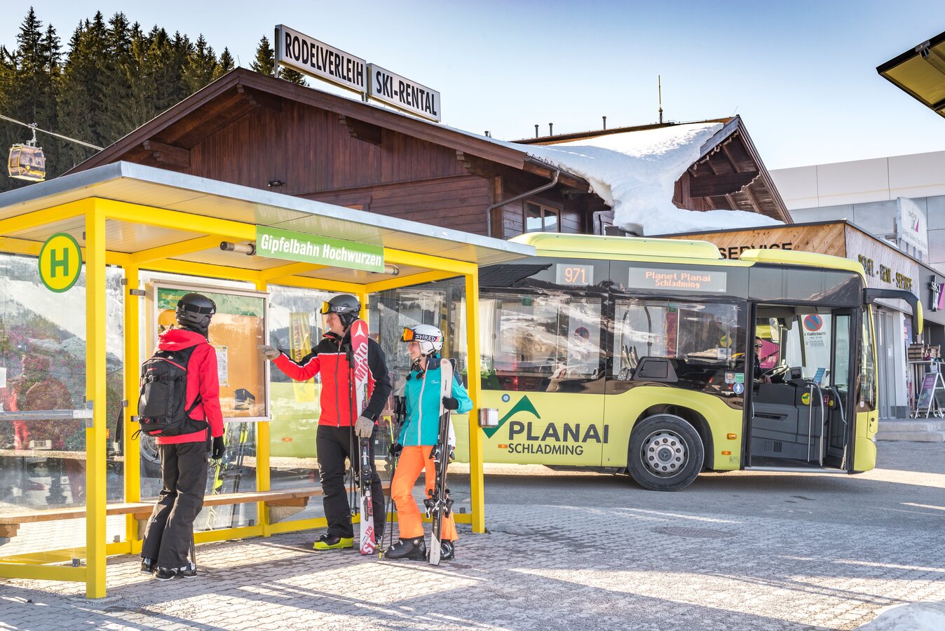 All ski buses in the Schladming-Dachstein Region: 4-Mountain Ski Area: Hauser Kaibling, Planai, Hochwurzen, Reiteralm, as well as Galsterberg, Fageralm, Ramsau am Dachstein and Dachstein glacier. The ski bus is free with a valid ski pass (with the exception of groups).