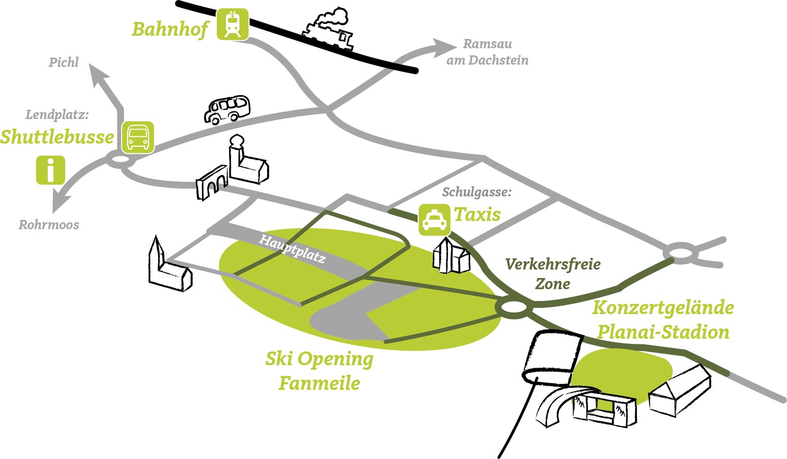 In the center of Schladming there will be a Ski Opening Fan Mile from 3:00 p.m. with DJs, live bands and several highlights.