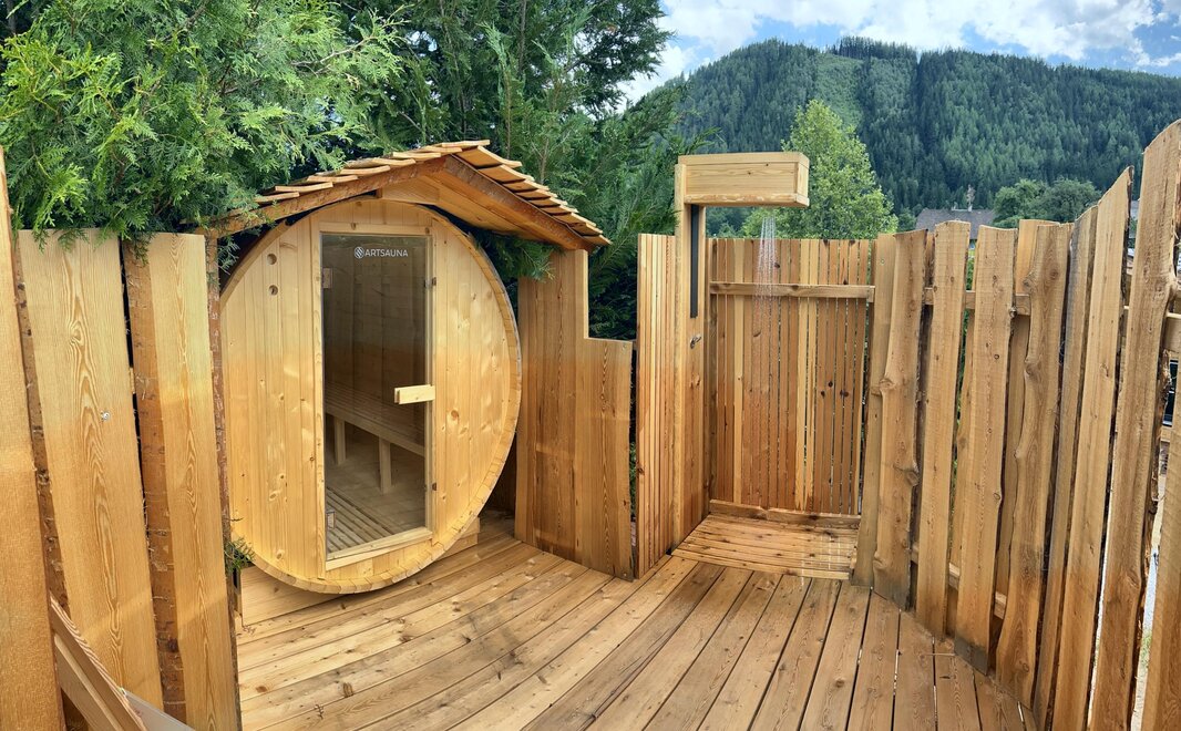 Een echt hoogtepunt is de fins sauna, een traditionele Finse sauna van hout, die met aangename warmte en natuurlijke geur lichaam en geest tot rust brengt. Het wellness-aanbod wordt aangevuld met een ruime bio-sauna voor maximaal 8 personen – ideaal om te ontspannen na een actieve dag in de bergen. Vooral populair is de hot tub in de buitenlucht: met een houtgestookte kachel verandert het bad vat in slechts twee uur in een aangenaam warm buitenbadervaring – omgeven door alpenweides in de zomer of besneeuwd winterlandschap.