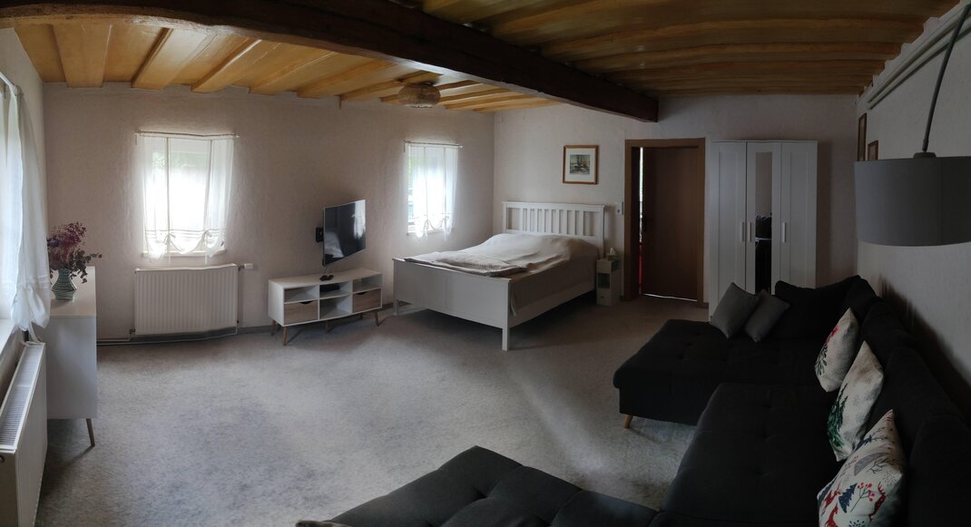 – een grote slaapkamer met tv