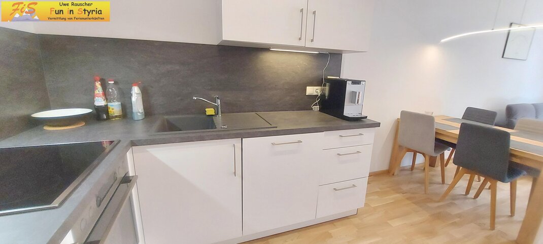 Het 2-kamer appartement Bergzeit verwelkomt u met een slaapkamer met een tweepersoonsbed, een ruime woon-slaapkamer met een uitschuifbare slaapbank voor 2 kinderen, evenals een gezellige eethoek en een zeer goed uitgeruste keuken met oven, fornuis, vaatwasser, koelkast met vriesvak, koffiemachine (met molen), waterkoker, toaster etc.