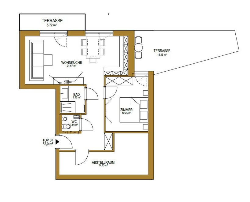 number double bed/s: 2, Bedbank max. pers.: 2, number couch/es: 1