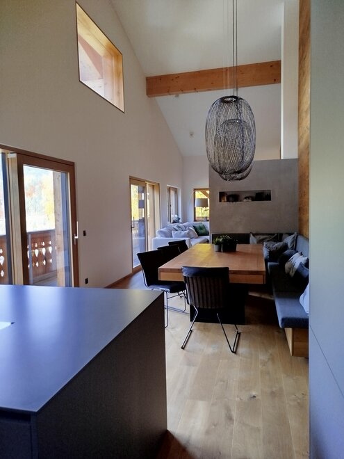 Kamers & Voorzieningen1 tot 9 Personen - 114 m²• per lift, die direct naar de woning leidt- Exclusief ingerichte woning in chalet-stijl, hoogwaardig meubilair / Volledige uitrusting (wasmachine, droger, talrijke keukengerei)