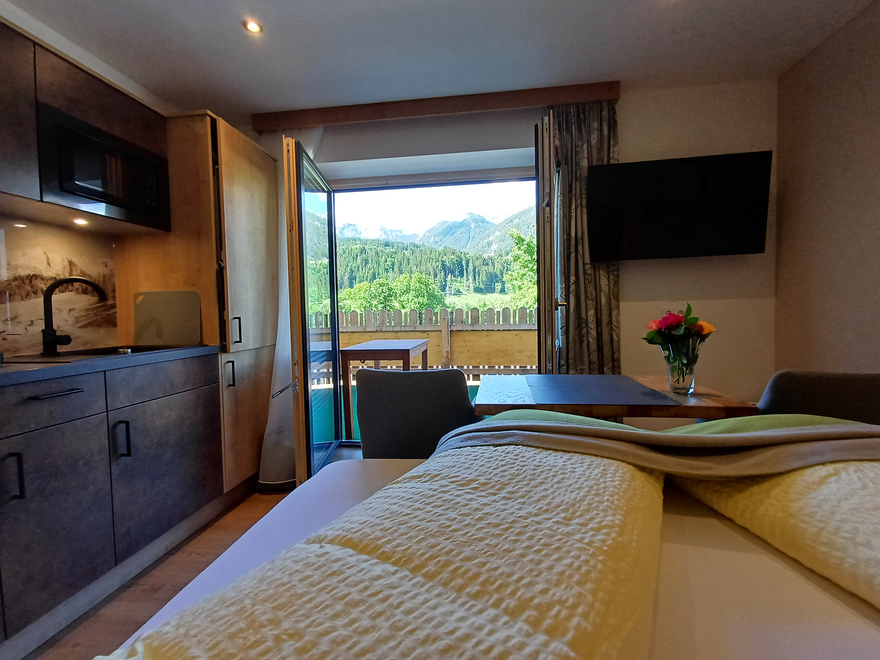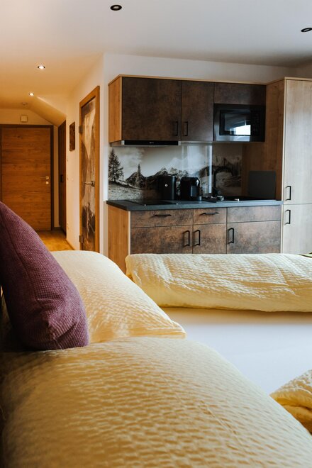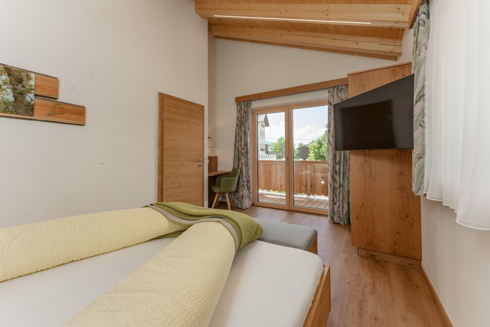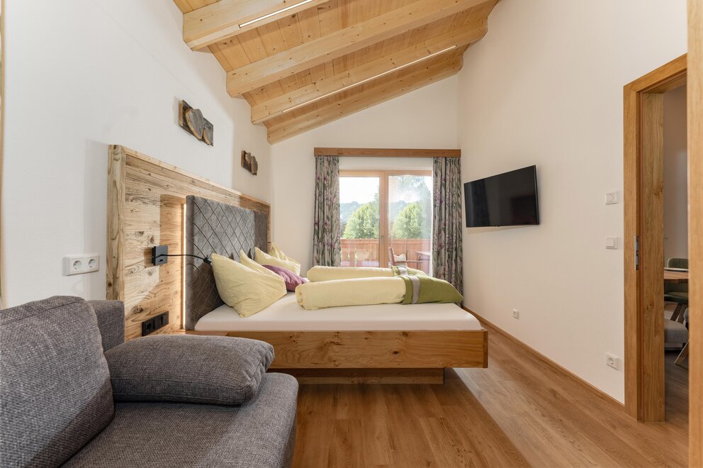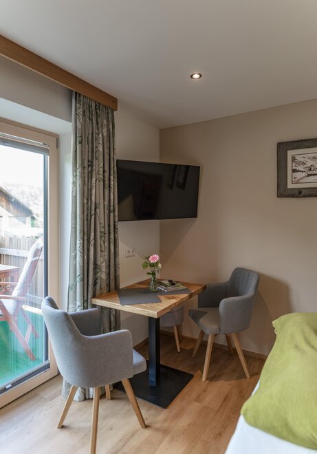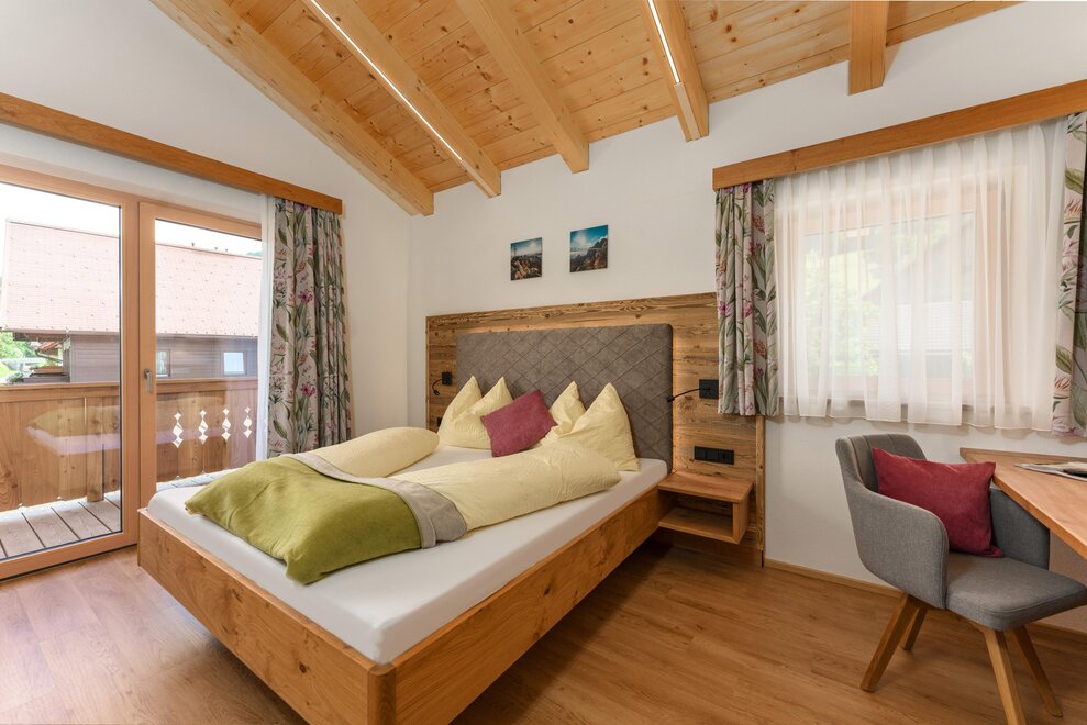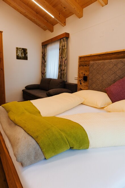 Op de boerderij wachten u twee- en driepersoonskamers. De rookvrije kamers zijn voorzien van een douche, toilet, Sat-TV en gratis W-Lan, en sommige hebben een balkon. Van de kamers heeft u een adembenemend uitzicht op de lokale bergen of op onze liefdevol onderhouden tuin. Als speciale service staat er per kamer een overdekte carport-parkeerplaats ter beschikking. In de ochtend wacht u een hartig en uitgebreid ontbijtbuffet, zodat u goed versterkt aan uw vakantiedag kunt beginnen.