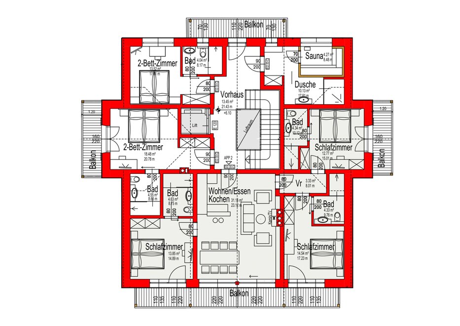 De royale woonruimtes met volledig uitgeruste keukens zijn perfect voor gezellige momenten. De comfortabele tweepersoonsbedden zorgen voor een goede nachtrust, bovendien zijn er op twee verdiepingen Alm-sauna's voor gemeenschappelijk gebruik (alleen in de winter). De woonunits bieden moderne badkamers (douche en wc), pelletkachels, flatscreen-tv, gratis wifi, beddengoed, handdoeken en parkeergelegenheid.