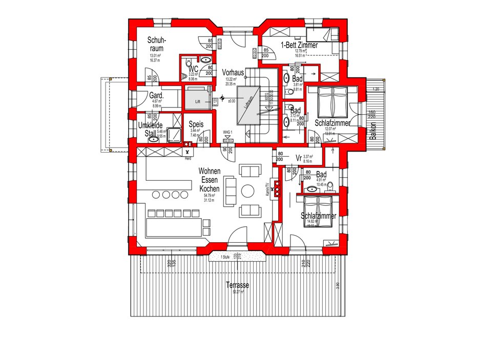 Het LANDHUIS MANDLBERG, met in totaal 459 m², is een betoverend pand met een fascinerend verhaal dat zijn unieke uitstraling en rustieke charme bepaalt. Ooit een bescheiden boerenhuis, werd het gebouw afgebroken en opnieuw opgebouwd, waarbij echter een opmerkelijk detail bewaard bleef - alle houten elementen van het oude boerenhuis.
