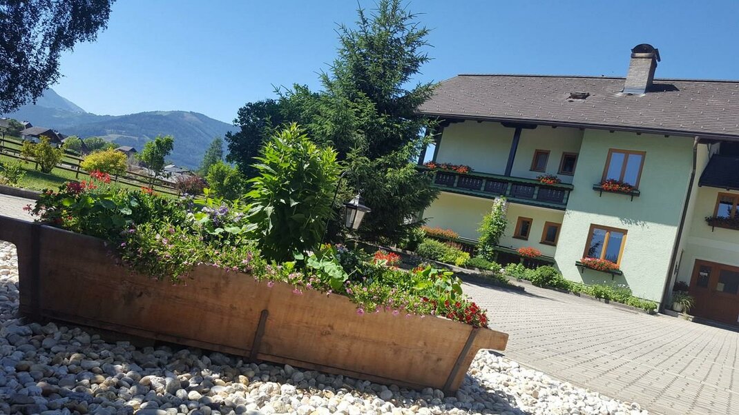 Ons huis staat op een hoogplateau op 800 m boven zeeniveau aan de rand van het bos in een rustige, zonnige zuidligging. Droomachtig is het uitzicht op onze huisbergen Grimming, Kammspitze, Stoderzinken en op de Niederen Tauern met het natuurpark Sölktäler. Skiliefhebbers vinden bij ons het ideale uitvalspunt naar het sportgebied Schladming/Haus im Ennstal en zijn live erbij in de skigebied amadé of genieten van de schoonheid van de natuur.