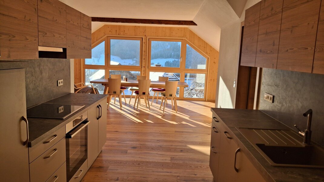 Met een oppervlak van 140 m² biedt het appartement Gipfelblick veel ruimte voor maximaal 6 personen, comfortabele en ruime woning, voldoende ruimte aan de grote eettafel ideaal voor gezamenlijke maaltijden en gezellige avonden, met een prachtig uitzicht op de bergen en toppen, volledig uitgeruste keuken, woonkamer. Voor 5-6 personen: 3 slaapkamers, 2 badkamers met toilet, 1 extra toilet (Voor 4 personen vervalt een slaapkamer en een badkamer!)