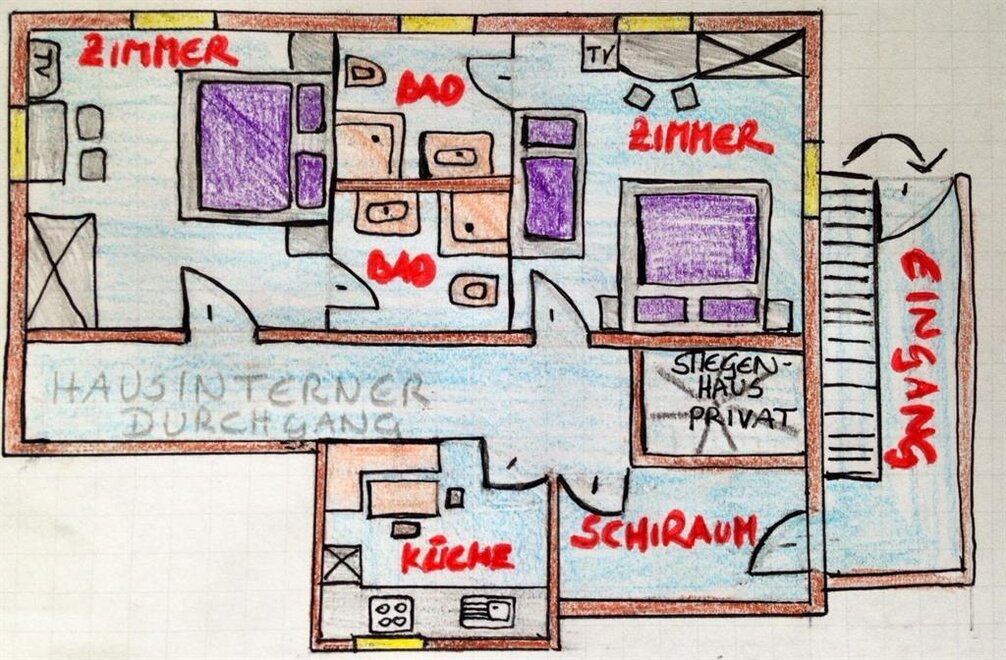 Het huis Wöhrer ligt op een rustige en zonnige locatie aan de Fastenberg/Planai op een hoogte van 1080 meter. De WK-afdaling (nr. 1) ligt direct naast ons en het dalstation van Planai is met de ski's binnen 3 minuten te bereiken. Het onlangs gebouwde vakantieappartement met een prachtig panoramisch uitzicht op de bergen bevindt zich op de begane grond en beschikt over voldoende parkeermogelijkheden. Het appartement in moderne stijl biedt veel ruimte voor ontspannen wonen voor 4 - 5 personen. De keuken (ongeveer 10 m²) is volledig uitgerust (elektrische kookplaat met 4 kookplaten en oven, koelkast met vriesvak, vaatwasser, Taps-koffiemachine van het merk Caffissimo, eethoek). Beide slaapkamers (ca. 20 m²) hebben elk een aparte badkamer met toilet; hand- en douchehanddoeken worden verstrekt; sat-tv, internettoegang. Op verzoek is er een broodjesdienst mogelijk. Direct naast ons bevindt zich de Holzhackerstube, die bekend staat om het zeer goede eten.