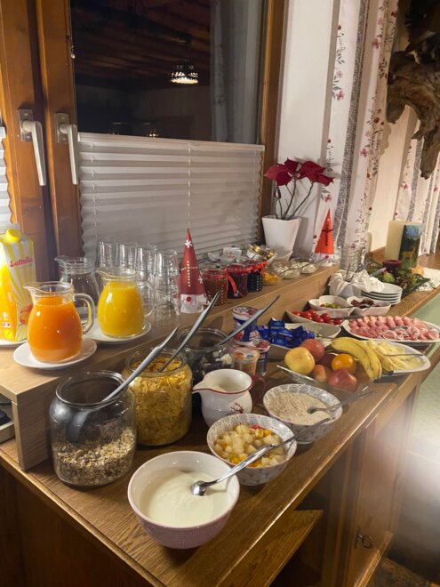 In de ochtend serveren wij u in onze stube met tegeloven een versterkend ontbijt met regionale producten, 's avonds komen de gasten graag samen in een gezellige sfeer en bereiden hun volgende uitstap voor. In de zomer ontspant u in onze prachtig onderhouden tuin, waar ligstoelen en veel rust uitnodigen om te zonnebaden en uit te rusten. In de winter tankt u nieuwe energie in onze fysiotherm-infraroodcabine na een actieve dag. Uw skimateriaal kunt u opslaan in onze skikast met schoenen droger.