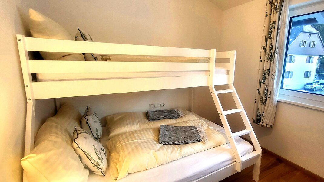Op de bovenverdieping zijn er twee slaapkamers met tweepersoonsbedden en een andere slaapkamer met een stapelbed (onder 1,40 m, boven 90 cm) beschikbaar. Daarnaast zijn er een badkamer met douche en toilet en een andere badkamer met bad/douche en toilet.
