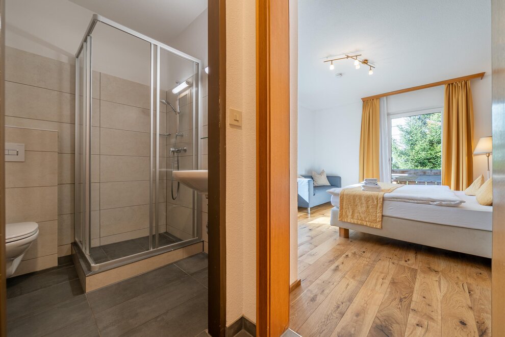 Onze ruime famil suite biedt veel ruimte en comfort voor maximaal vier personen – perfect voor gezinnen of vrienden die samen ontspannen dagen in de bergen willen doorbrengen.