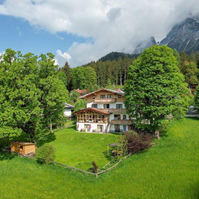 Ons familiebedrijf ligt rustig aan de rand van het bos - midden in de indrukwekkende bergwereld van het Dachsteingebirge. Een vakantie in de bergen betekent pure ontspanning, ver weg van het dagelijkse leven. Al bij het ontbijtbuffet geniet u van een adembenemend panorama.