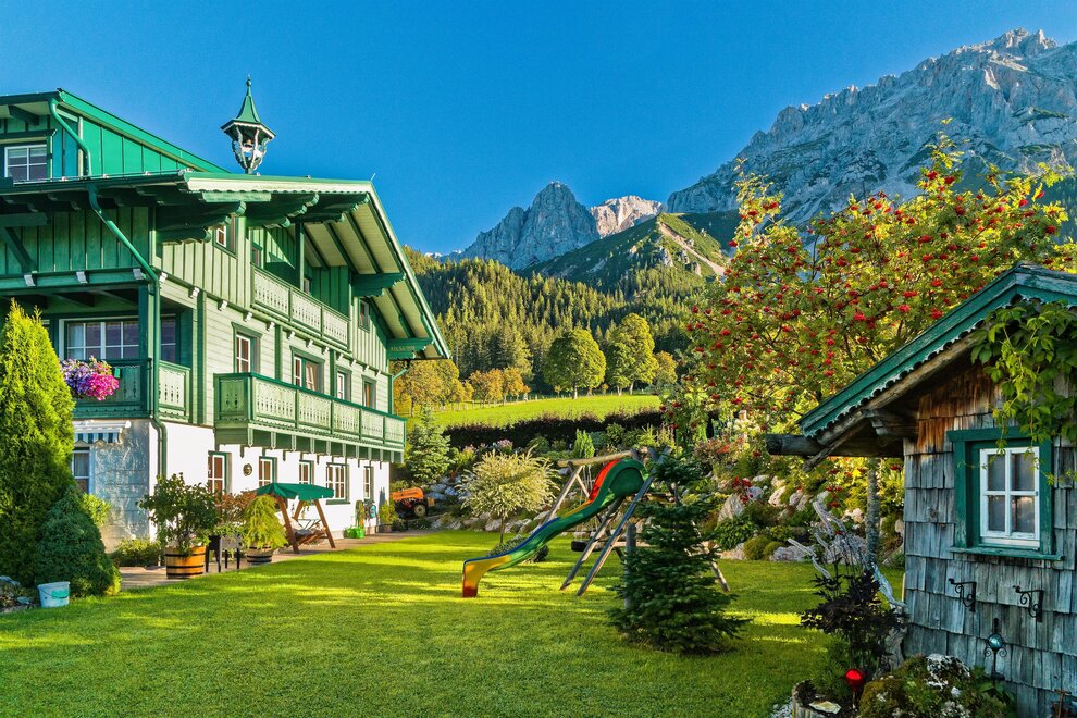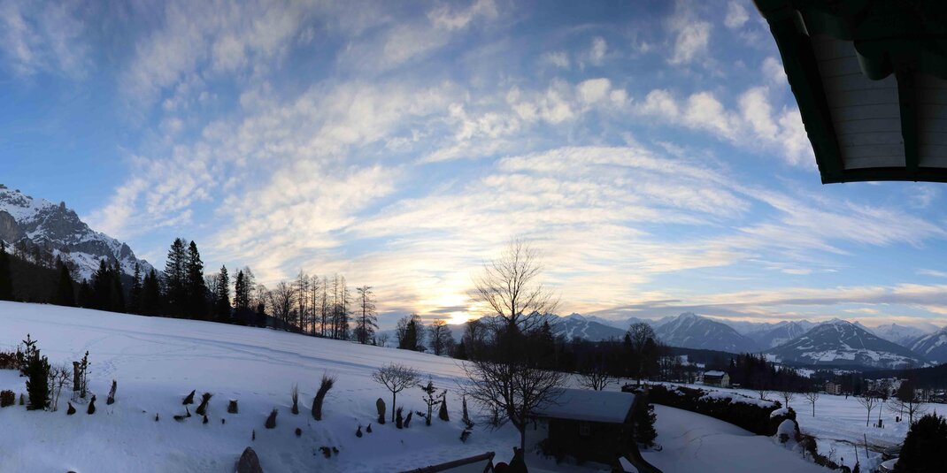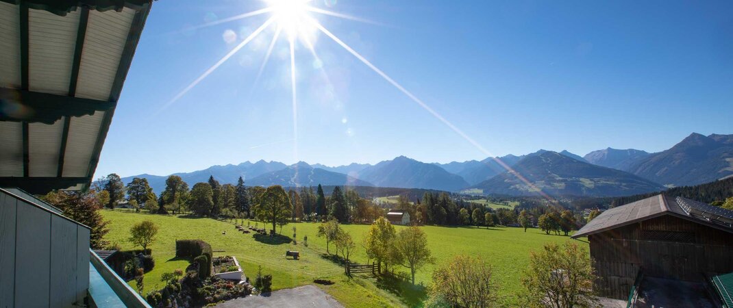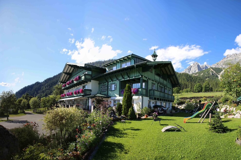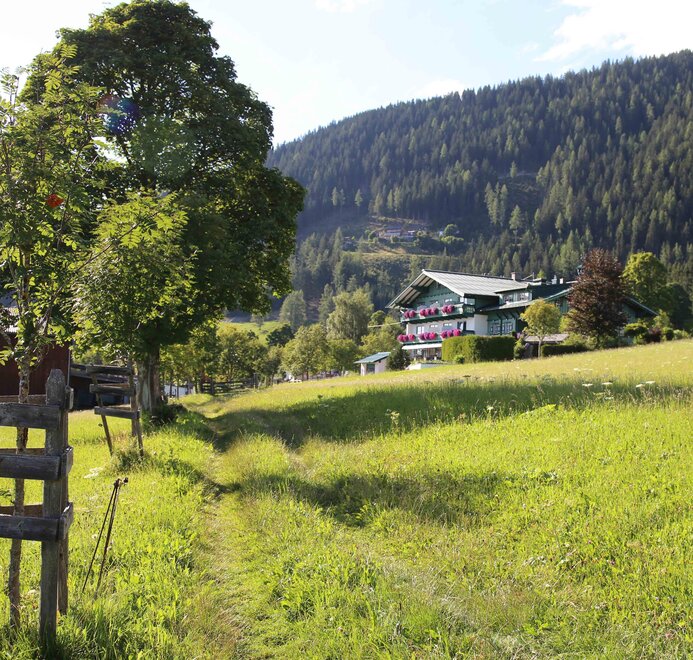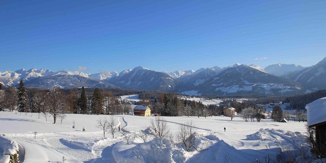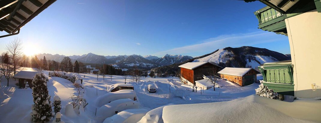 Boven de hoofdweg, op een lichte heuvel in het dorpsdeel Schildlehen, onthult zich voor onze gasten een fascinerend panoramisch uitzicht over de bergwereld van de Schladminger Tauern of op de ski- en belevenisberg Rittisberg. Aan de voet van de Dachstein, omringd door onze groene weiden, bieden wij de perfecte uitvalsbasis voor wandelingen, mountainbiketochten, klimtochten en skitochten. U bereikt direct vanuit het huis de toegang tot de klassieke of skatingloipe, 70 km winterwandelpaden of de kinderskilift. Op slechts 10 minuten lopen vindt u een sportwinkel met skiverhuur, de lokale kinderskischool of de 3,5 km lange nachtrodellbaan.