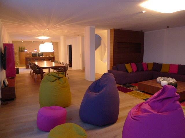 Hartelijk welkom in ons nieuw gebouwde moderne huis - Glücksthaler Villa en Appartementen in de kleine gemeente Aich. De villa en onze twee appartementen liggen op een prachtige, rustige en zonnige locatie in het vakantiegebied Schladming-Dachstein. Ons huis is uitgerust met wifi en is gratis beschikbaar voor onze gasten. De villa biedt plaats aan 8-12 personen en is ingericht met 4 slaapkamers en een wellnessruimte met een Finse sauna, stoomsauna en een ontspanningszone. De twee appartementen zijn ingericht voor elk 4-6 personen met twee aparte slaapkamers. Op loopafstand bevindt u zich bij de manege Aigner waar onze gasten de mogelijkheid hebben om ontbijten of halfpension te bestellen. Langlaufloipe, skibushalte, supermarkt en een gezellig café liggen in de directe omgeving. Ideaal uitgangspunt voor wandelingen en uitstapjes - ongeveer 5 minuten met de auto naar de skiregio Amadé.