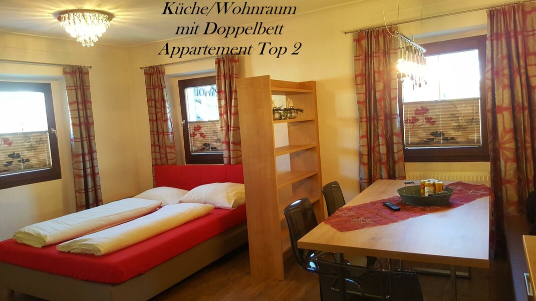 Ons appartement Top 2 is voorzien van een volledig uitgeruste keuken, 1 woonkamer met slaapgedeelte (tweepersoonsbed), 1 slaapkamer (tweepersoonsbed), 1 kinder-slaapkamer met een royaal eenpersoonsbed, kabel-tv, wifi, wieg, kinderstoel, bedlinnen, handdoeken, douche/toilet met wasmachine en een "Chill Lounge" in de binnenplaats (in de zomermaanden).