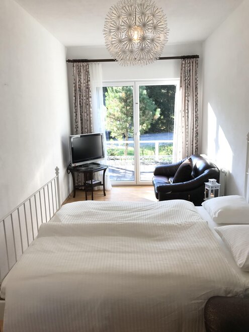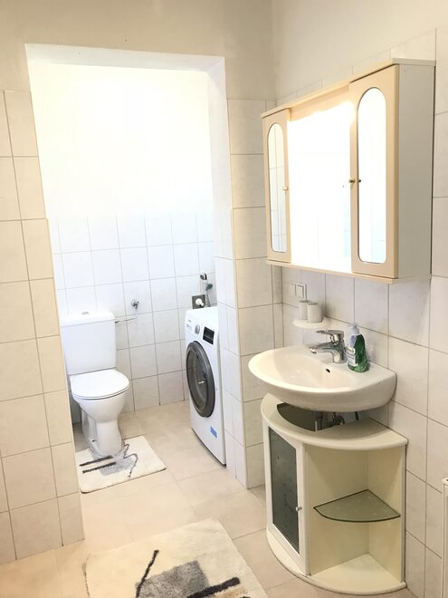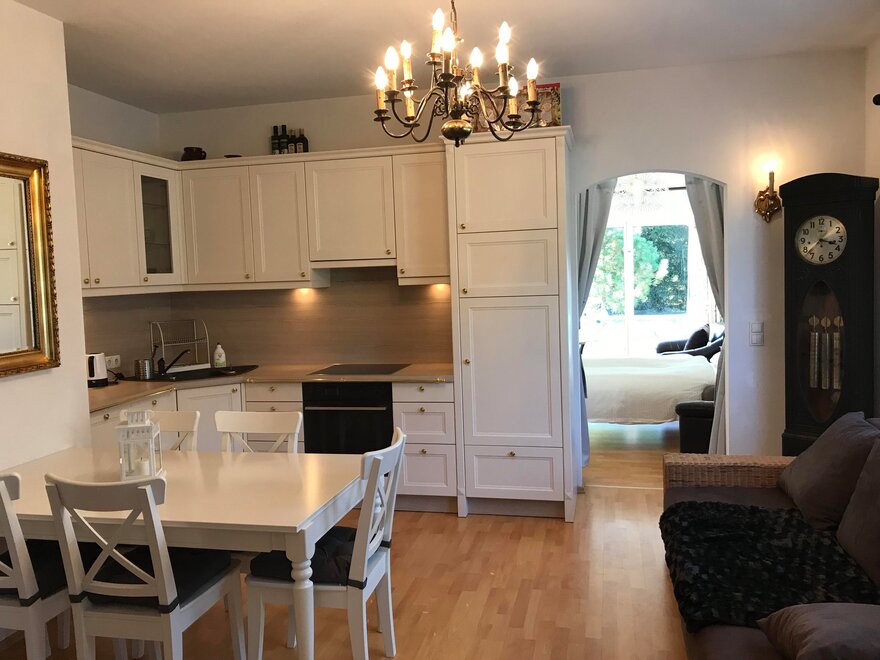 DE WOONRUIMTE: Ik bied een 2-kamer-vakantiewoning aan, bestaande uit 1 slaapkamer met een tweepersoonsbed, een volledig uitgeruste designkeuken, een badkamer en een privéterras. In de woonkamer bevindt zich een gezellige bank, die als tweede bed voor een van de twee gasten kan dienen (Echter, er is slechts een gescheiden gordijn tussen de slaapkamer en de keuken-woongedeelte). De woning bevindt zich op de begane grond.