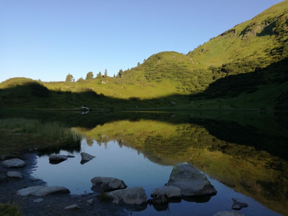 Start from the mountain rescue house on a steeper ascent, where flowers line the path and spruce and pine stand side by side. Halfway up, turn left to a pond. The detour is worthwhile. Take a deep breath and gather strength for the final spurt, because after about 10 minutes you will reach the Plannersee.