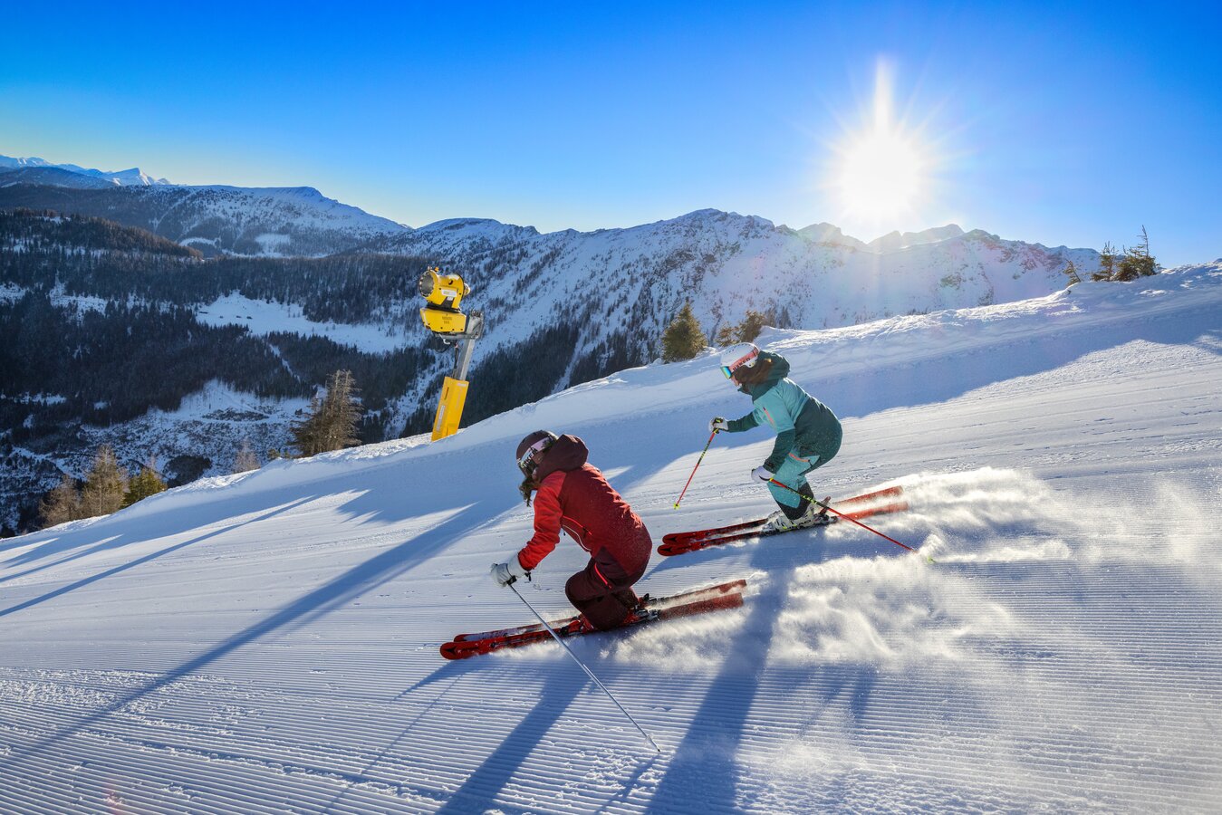 At Hauser Kaibling you can enjoy a breathtaking panorama at the highest point of the 4-mountain ski area (2,015 m). In addition to the wide variety of slopes, the XXL fun slope with a length of 1,460 meters and the pleasure island with 360° panoramic loungers delight young and old.