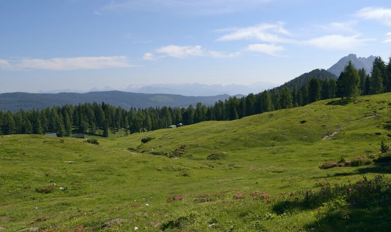 At the wayside cross next to the Stoder hut, the trail branches off to the summit and the Friedenskirchlein (little church), which can be reached in about 20 minutes.
