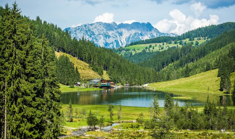 Hoe verder u het Kleinsölktal inrijdt, hoe indrukwekkender de steile beboste hellingen naar de toppen stijgen. Aan de Schwarzensee, die aan drie kanten door donkere bossen is omgeven, staan enkele grote, oude platanen aan de oever en charmante weerspiegelingen in de open plekken. Hier vind je watervallen die als sluiers over de rotswanden vallen en een watershowparcours.