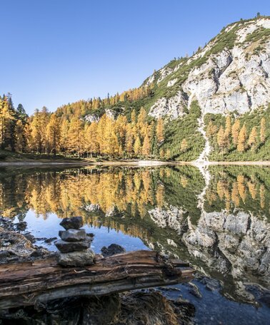 At the wayside cross next to the Stoder hut, the trail branches off to the summit and the Friedenskirchlein (little church), which can be reached in about 20 minutes.