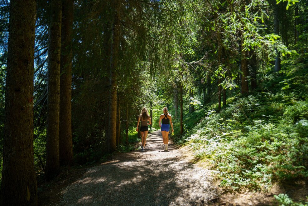 Beautiful, sunny and almost flat panoramic path on the Ramsauer plateau. From the event center first to the Protestant church, past the cemetery towards Knollhof. A beautiful, wide meadow path suitable for strollers leads through the larch forest to the Grahhof (the oldest farm preserved in the Salzburg architectural style) and further, along rowanberry and maple avenues to the Dachsteinstrasse toll booth. In between there are always very beautiful views of the mountains of the Schladminger Tauern (the Styrian Kalkspitze is dominant) and of the southern flank of the Scheichenspitze, as well as of the Dachstein triumvirate (Hoher Dachstein, Mitterspitz and Torstein). Down the stream to the Tannenweg junction at the foot of the Rittisberg, left along the Tannenweg along the edge of the forest via "Ramsau Beach" (bathing lake) back to the village of Ramsau.