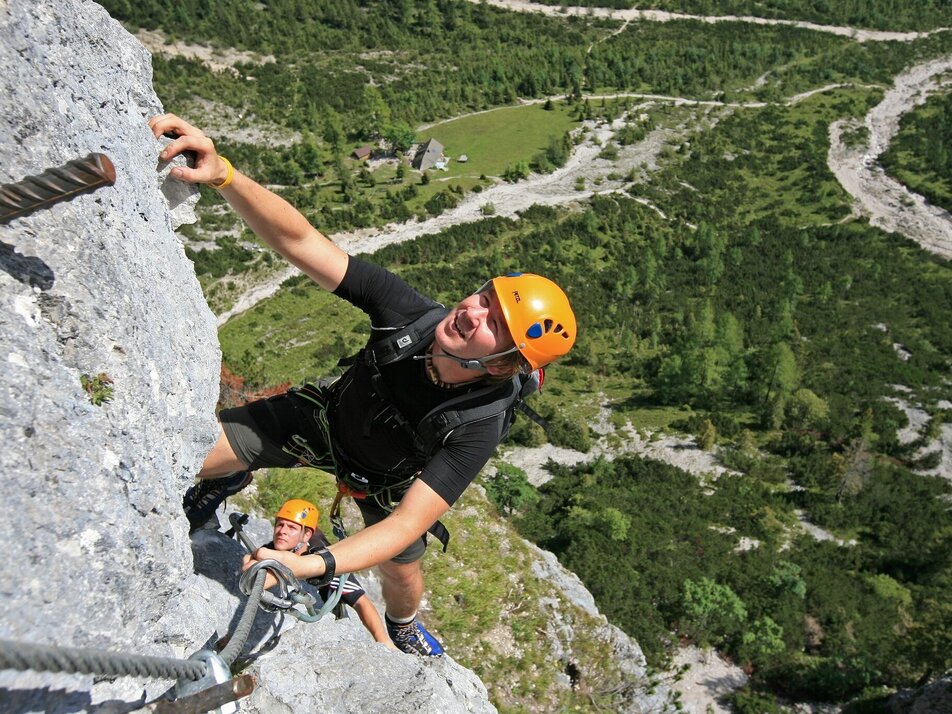 Over two weeks of construction, 260 metres of steel cable and numerous pegs were mounted. No modern elements, such as rope bridges, were added to this classic sports Via Ferrata. The route is named after Siegmund, the owner of the Stangalm.