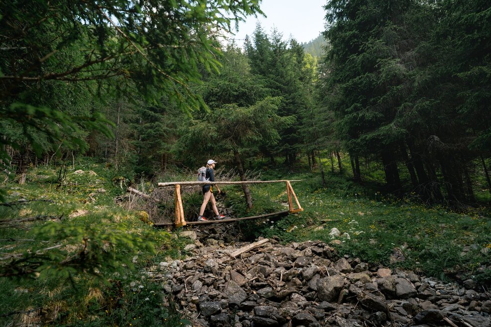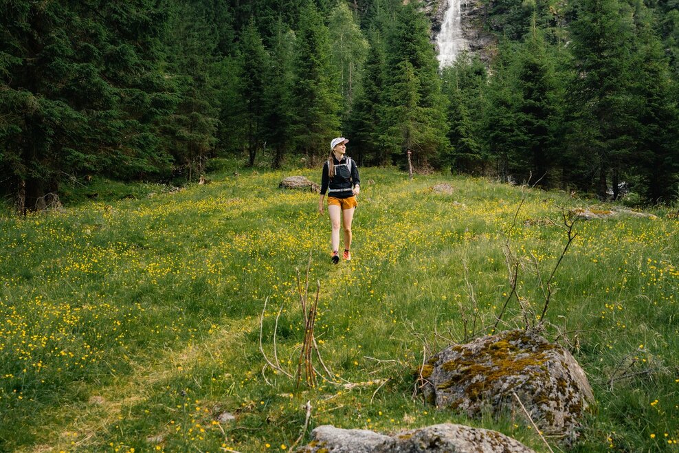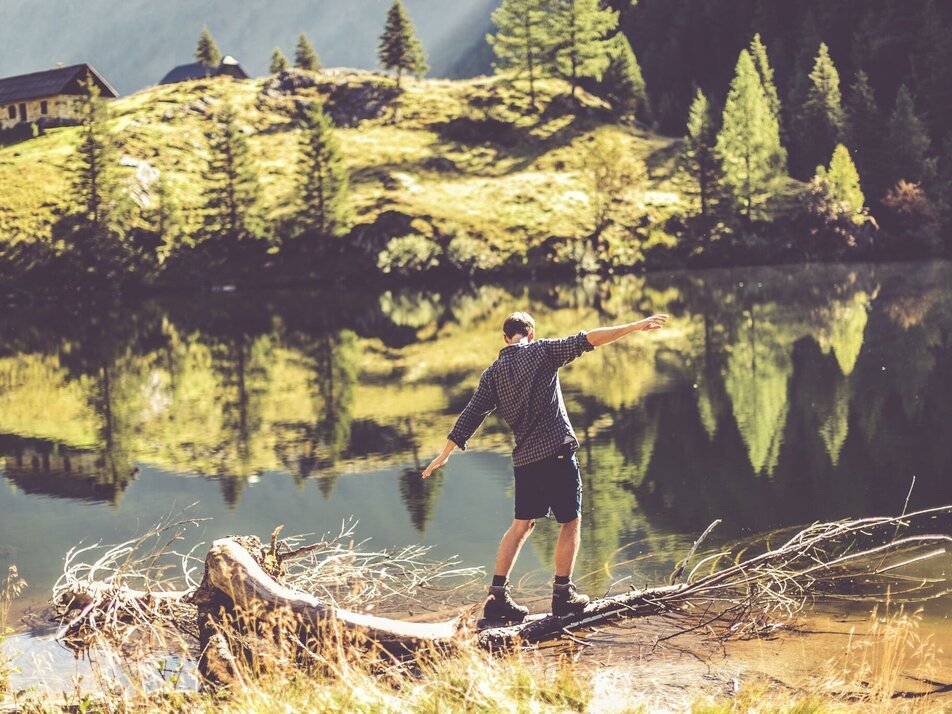 The climb to Hohensee begins from the waterfall via the hiking trail. On the ascent you cross the forest road twice before staying on it the third time and continuing over three bends to its end. Here you now follow a slightly wider hiking trail to the Hohenseealm. At the lake you will finally find a nice place to rest. Return on the same route.