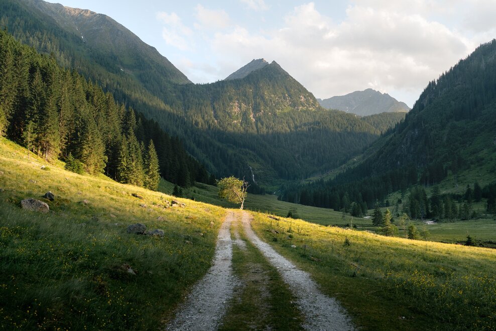 From St. Nikolai in the Großsölktal you hike along the Bräualmbach, past the Dürrmoos waterfall to the Hohensee. There, in addition to several dilapidated huts, there are two alpine pastures built of marble stones, which are, however, not managed. The lake itself is surrounded by high mountains and offers the perfect resting place for you.