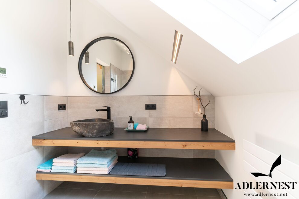 Ten przestronny apartament o powierzchni 60 m² z ukośnym dachem zachwyca przyjemną znajomością i oferuje miejsce do relaksu, odprężenia i zanurzenia się. Duże okna, przytulne panoramiczne okno oraz taras gwarantują oszałamiający widok na zieleń i góry.