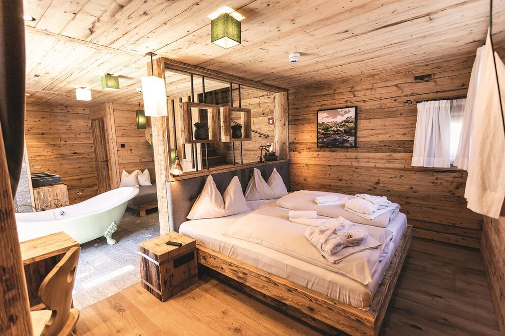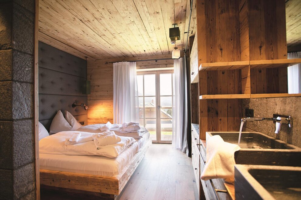 Ta wspaniała suite z podwójnym łóżkiem i dodatkowym łóżkiem oraz oddzielnym miejscem do wypoczynku z łóżkiem piętrowym jest w pełni wyposażona. Największą atrakcją jest przestronny, prywatny taras słoneczny. Wyposażenie pokoju: Widok na górski krajobraz Wanna/prysznic w komplecie Balkon/taras Telewizor Suszarka do włosów Ręczniki Łóżeczko dla dzieci Sprzęt do sprzątania w hotelu Sejf Telefon Szlafrok Poduszka hipoalergiczna Budynek główny Podwójne łóżko (king size) Rozkładana kanapa Łóżko piętrowe