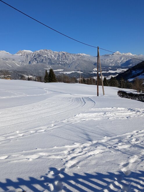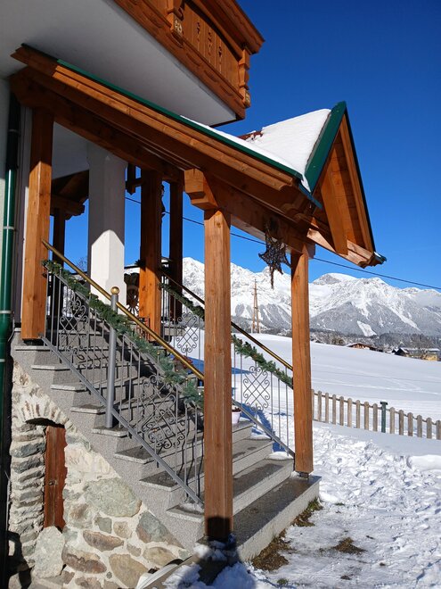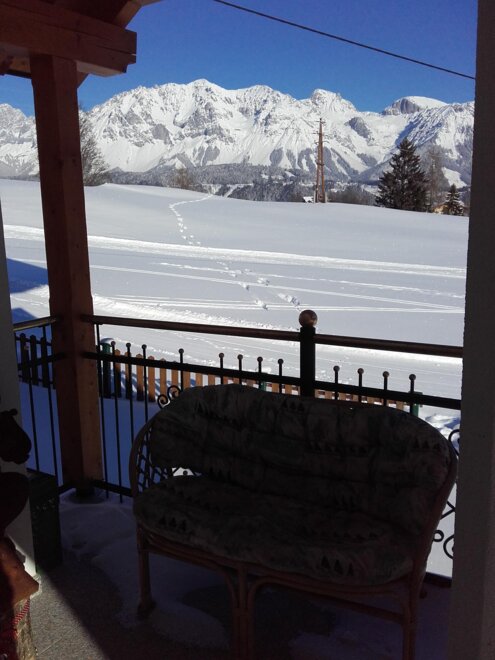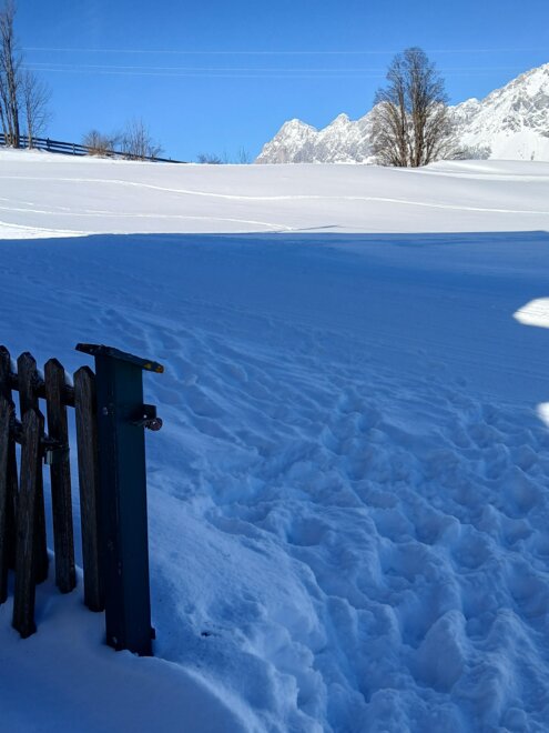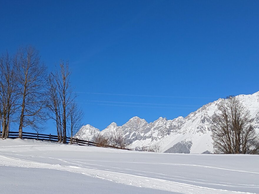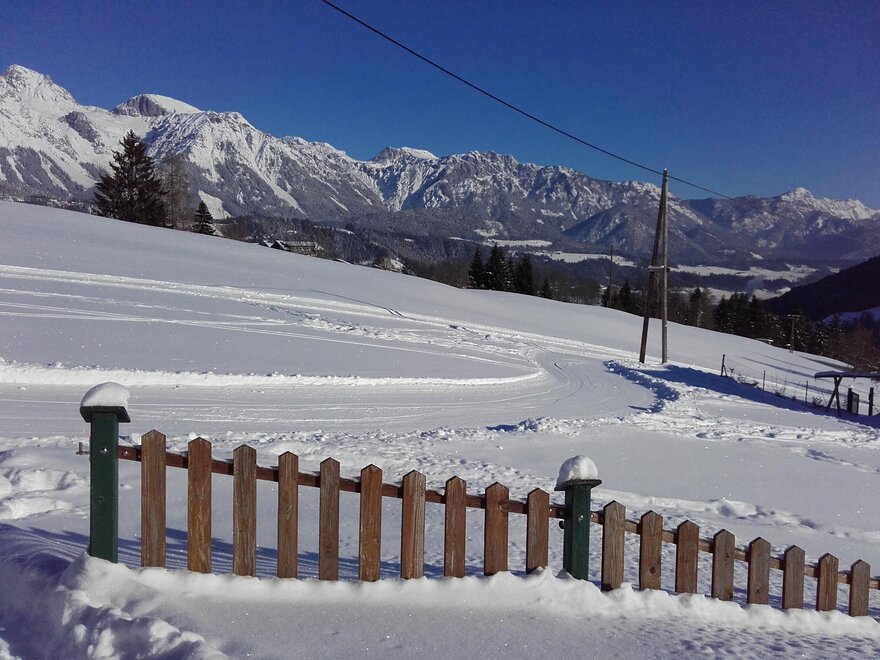 Zimą tuż przed naszym domem znajduje się wejście do legendarnych stoków 4-górskiego ski-kręgu. Czeka na Was niemal nieograniczona przyjemność ze jazdy na dobrze przygotowanych stokach. Również z dala od tras czeka na Was zimą wiele aktywności. W zaledwie kilka minut dotrzecie do ścieżek do narciarstwa biegowego, a także raj narciarski Ramsau am Dachstein znajduje się zaledwie 10 minut jazdy samochodem od naszego domu Alpenblick. Miłośnicy saneczkarstwa będą w pełni usatysfakcjonowani nocną oświetloną trasą saneczkową Hochwurzen. Smakołyk dla wszystkich saneczkarzy: na własnych saneczkach dotrzecie bezpośrednio do naszego domu przez drogę narciarską.