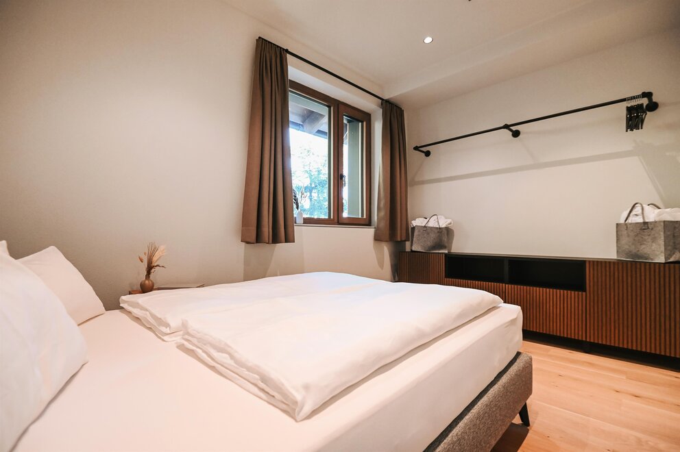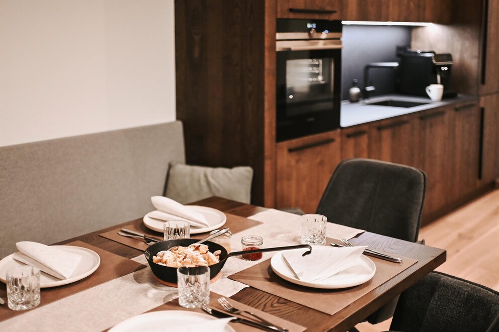 Suite Kachelofen Josefa łączy alpejski urok z nowoczesnym komfortem mieszkania. Serce suite stanowi tradycyjny piec kaflowy z kuchnią stołową, który zapewnia przytulne ciepło i szczególnie miłą atmosferę – w tym płyta grzewcza i piekarnik jak za czasów babci. Suite dysponuje oddzielną sypialnią, przestronnym salonem i częścią jadalną, nowoczesną łazienką oraz dużym tarasem z ogrodem. Wysokiej jakości materiały, ogrzewanie podłogowe i staranne detale sprawiają, że ta suite jest idealnym miejscem na wypoczynek dla smakoszy, rodzin lub par, które chcą na nowo odkryć alpejską tradycję.