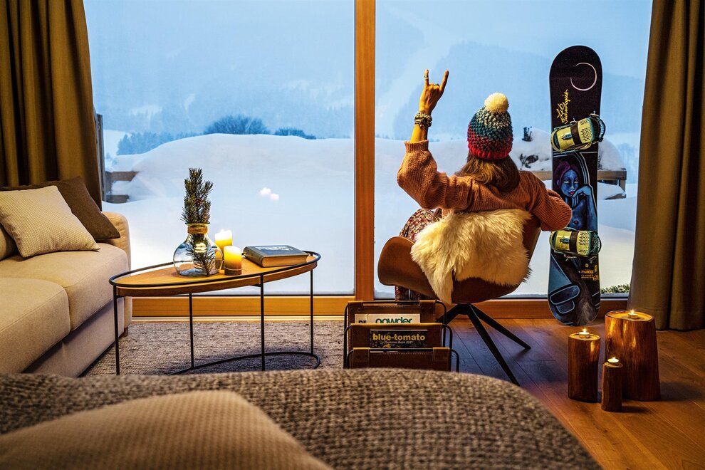 Najwyższej jakości materiały spotykają się w Alpine-Cosmopolitan designie z zapierającym dech w piersiach widokiem na masyw Dachstein i Niskie Taury. Położenie suite na północny zachód zapewnia słońce przez cały rok od południa, latem także we wczesnych godzinach porannych.