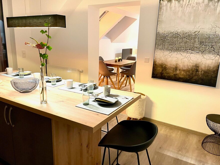 Jasne i przyjazne mieszkanie znajduje się na pierwszym piętrze naszego przytulnego, małego domu (całkowicie odnowione w 2022 roku) z widokiem na górski krajobraz regionu Schladming-Dachstein (np. stok narciarski Galsterberg, na Stoderzinken, Kamm i Grimming... Wokół piękna panorama górska. Mieszkanie zostało właśnie zaktualizowane i nowocześnie urządzone. Bar w kuchni zaprasza do przytulnych spotkań.