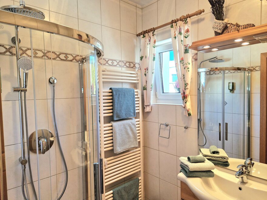 Tuż obok znajduje się łazienka z prysznicem i WC.