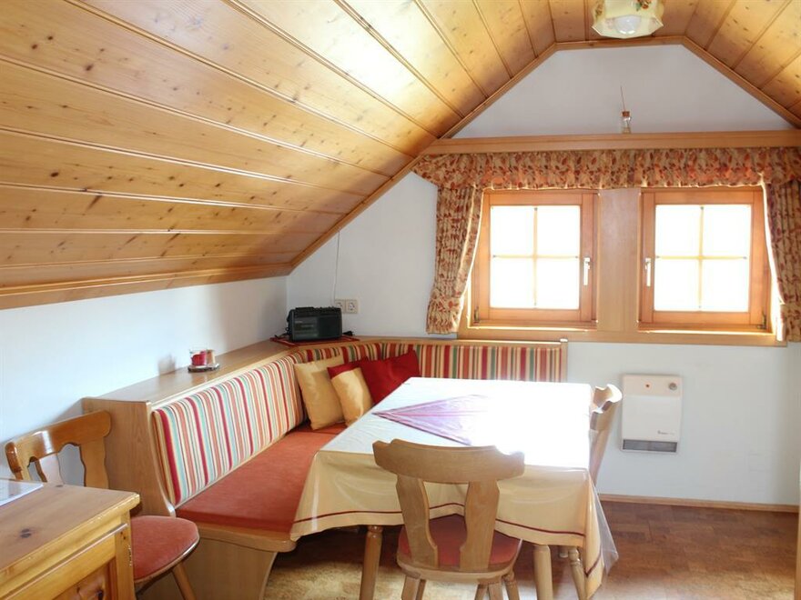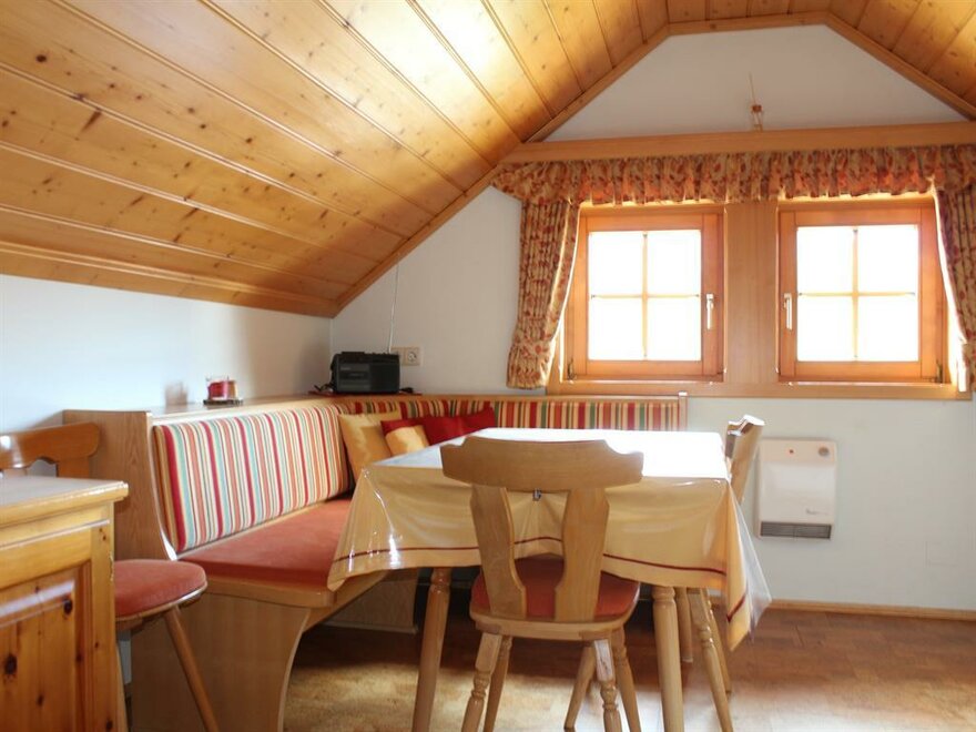Nasz apartament Gaislehner oferuje na 55 m² miejsce dla 2 do 6 osób. Przytulne mieszkanie wakacyjne dysponuje 2 oddzielnymi sypialniami, w pełni wyposażoną kuchnią (ekspres do kawy, naczynia, mikrofalówka, kuchenka elektryczna i wiele innych) z wygodnym miejscem do siedzenia oraz łazienką z prysznicem i WC. Oczywiście dostępna jest telewizja satelitarna i bezpłatne Wi-Fi. To, co szczególnie będziesz cenić, to niesamowity widok na rodzime góry, który oczarowuje każdego dnia i pozwala głęboko odetchnąć. Abyś mógł rozpocząć dzień wzmocniony, chętnie zorganizujemy dla Ciebie usługę piekarza, który codziennie dostarcza świeże pieczywo.