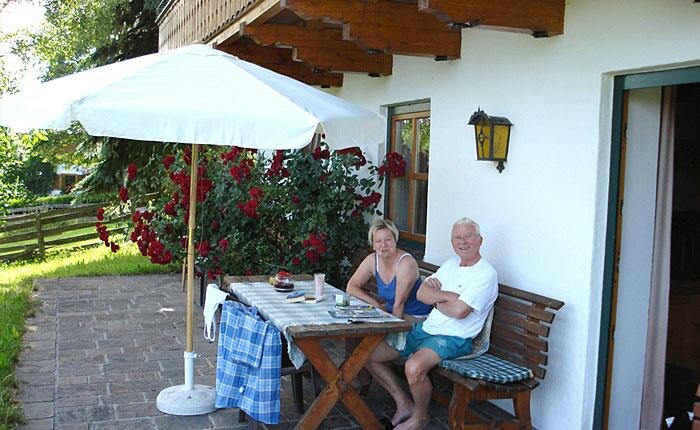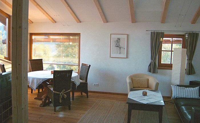 Biologicznie zbudowane i przestronnie wyposażone. Apartament z przedsionkiem, kuchnią połączoną z salonem, 2 sypialniami podwójnymi, łazienką z prysznicem, oddzielnym WC, Sat-TV, w słonecznej, spokojnej lokalizacji na skraju lasu. Duży taras południowy