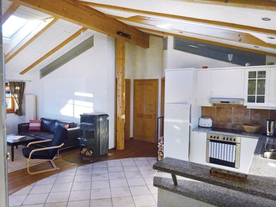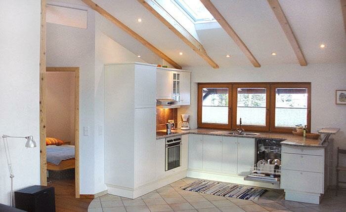 Biologicznie zbudowane i przestronnie wyposażone. Apartament z przedsionkiem, kuchnią z jadalnią, 2 podwójnymi sypialniami, dużą łazienką z prysznicem, osobną toaletą, Sat-TV, w słonecznej, spokojnej lokalizacji na skraju lasu. Mondenna galeria mieszkalna, w pełni wyposażona kuchnia, mały taras od zachodu.