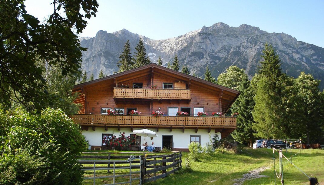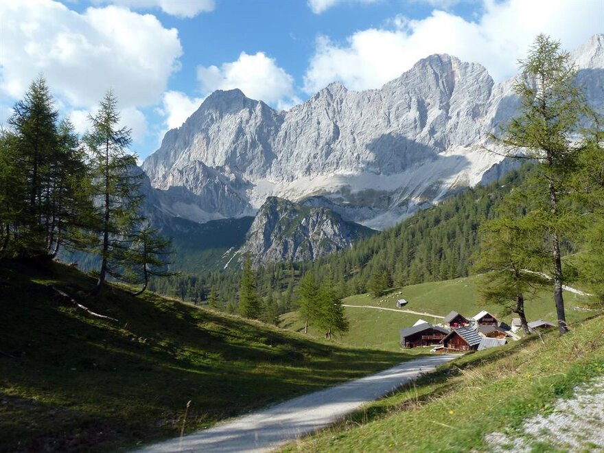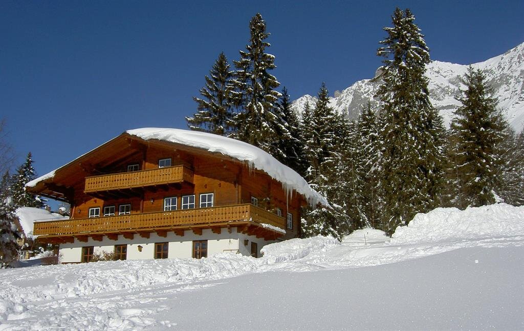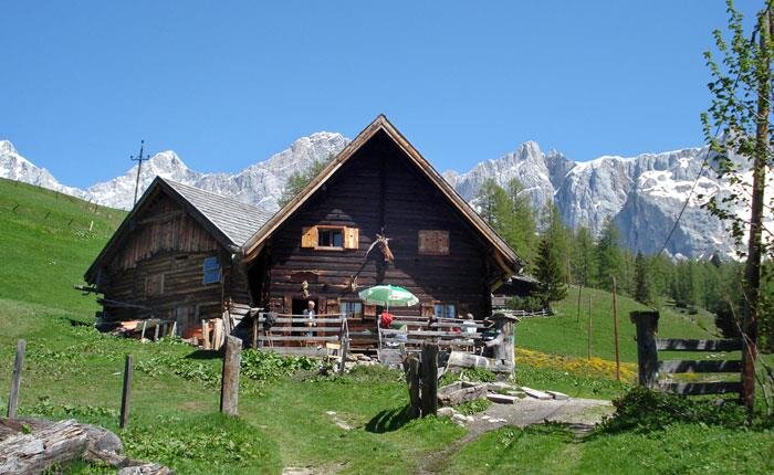 Chata górska na wysokości 1600m, z łóżkiem piętrowym + 1 pokojem dwuosobowym, WC, kuchnią, salonem, zimną wodą bieżącą, piecem kaflowym (ogrzewanie na drewno), światłem solarnym. Pięknie położona u stóp Dachsteinu.