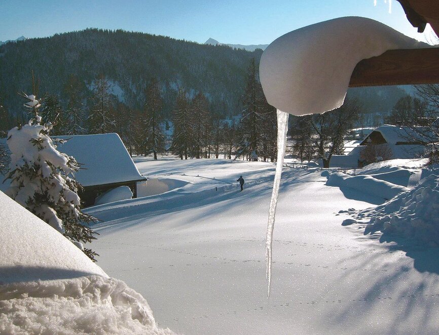 In winter, Ramsau turns to a fairy tale landscape.The plateau is a paradise for cross-country skiers and walkers.The numerous cross-country and hiking trails, (starting point right next to the house), are groomed every day. They are considered to be one of the best
