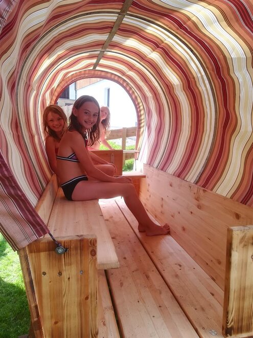 Nasi letni goście cieszą się czasem spędzonym na naszym małym ranczu. W stajni są zawsze mile widziani. Króliki cieszą się z głaskania i resztek sałat. Rustykalna ławka oraz miejsce na grilla zachęcają do romantycznych wieczorów. W ogrodzie znajduje się także sauna. Z kolei przyjemność i różnorodność znajdą nasi goście nad jeziorem kąpielowym w Aich. Kompleks rekreacyjny z 9-metrową wieżą wspinaczkową, placem zabaw i wieloma innymi atrakcjami jest osiągalny w zaledwie 2 minuty samochodem.