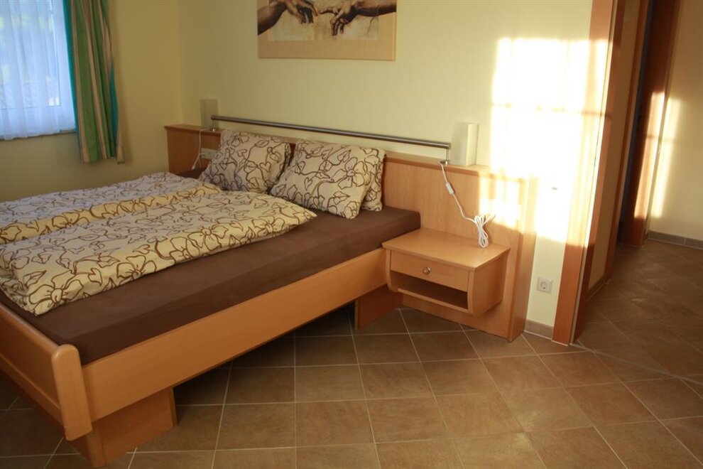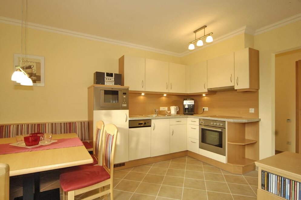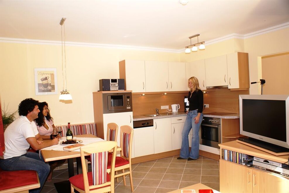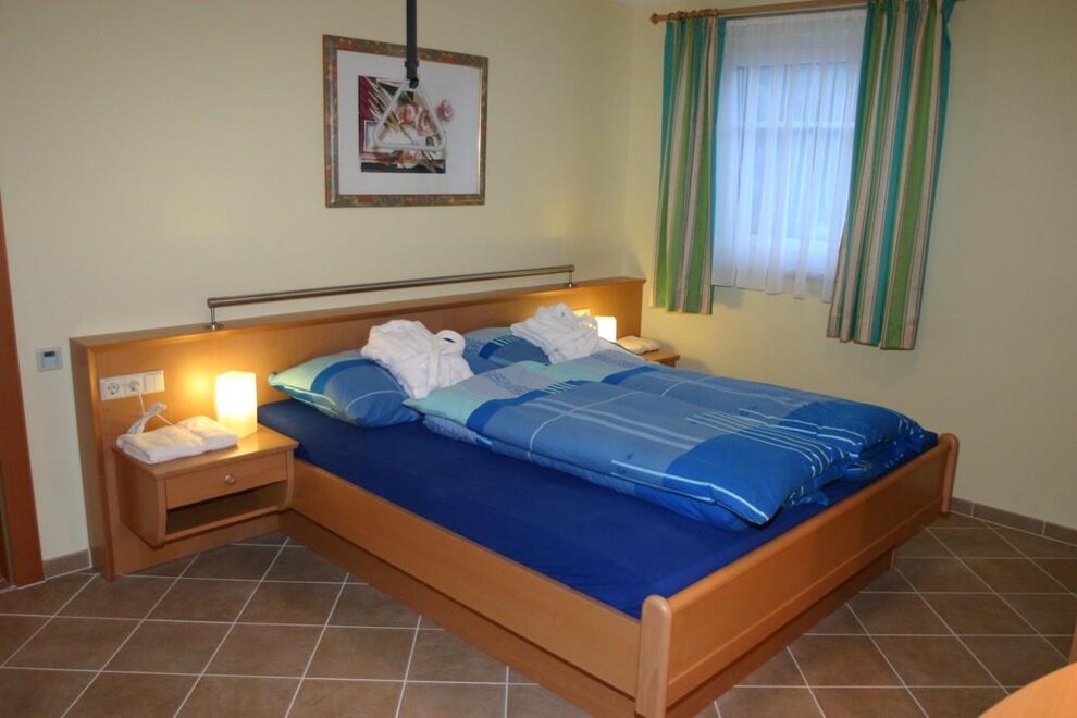 Słoneczne i cicho położone apartament (70m2) dysponuje bardzo wysokiej jakości wyposażeniem. 1 sypialnia z podwójnym łóżkiem, 1 sypialnia z dwoma pojedynczymi łóżkami. W dużej kuchni dziennej znajduje się rozkładana, wygodna sofa dla 2 osób. Dodatkowe łóżko dla osoby 7 na życzenie w obu apartamentach możliwe Łóżeczko dziecięce na życzenie możliwe Krzesło do karmienia na życzenie możliwe Ceny nie obejmują opłaty klimatycznej (€ 1,5/dorosłego) za apartament i noc Ceny obejmują wodę, prąd i koszty ogrzewania, a także naczynia, ręczniki oraz ręczniki kąpielowe, pościel, a także ręczniki saunowe i szlafroki Za krótkie pobyty do 3 nocy włącznie pobieramy € 8,-/osobę/dzień. NOWOŚĆ - Visa-Master-Maestrocard