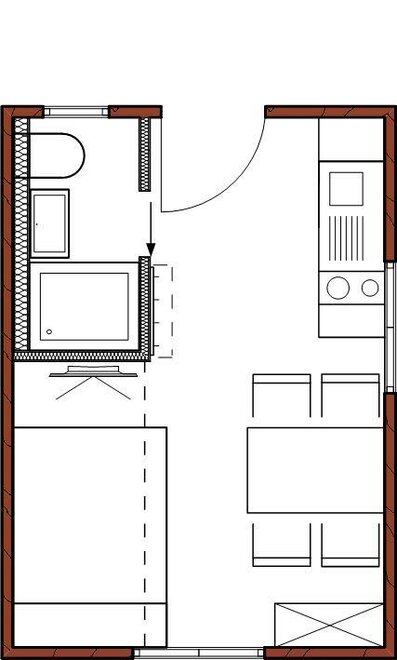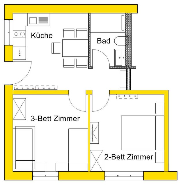 Nasz przytulny apartament 2 oferuje na powierzchni około 32 m² miejsce dla maksymalnie 4 osób. Jest wyposażony w jedną sypialnię, łazienkę oraz kuchnię. Komfortowa kuchnia ma przytulny kącik jadalny.