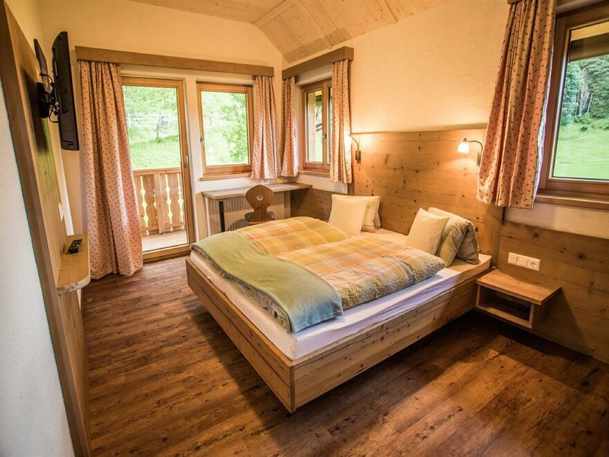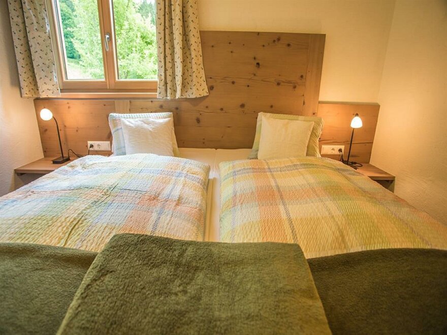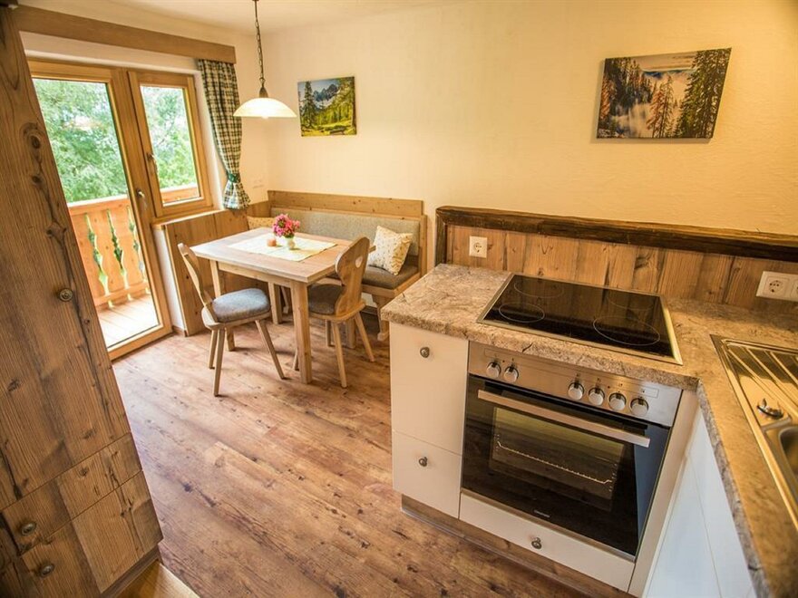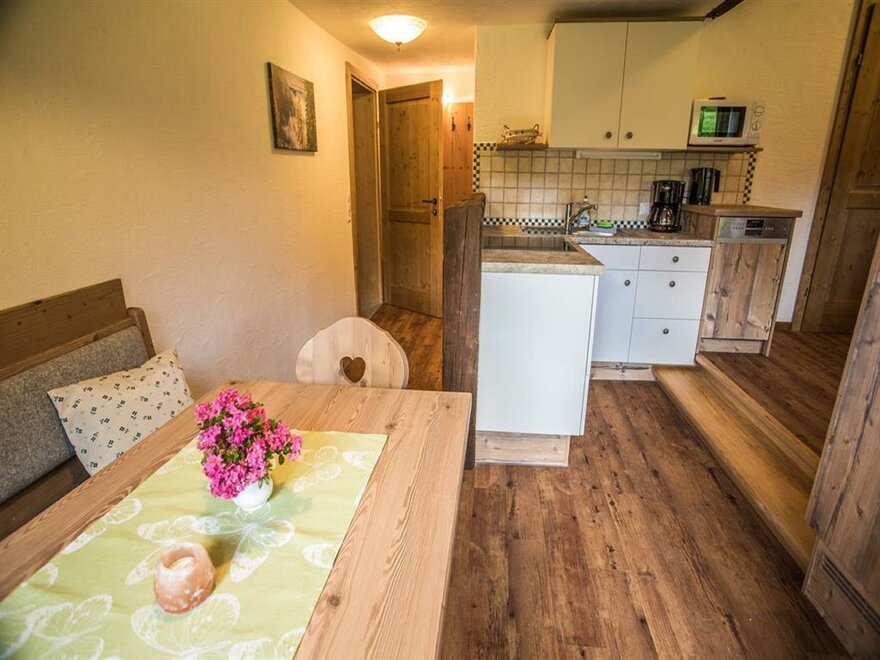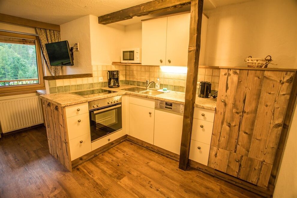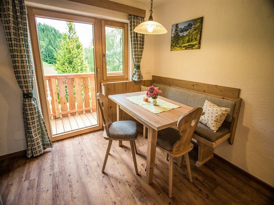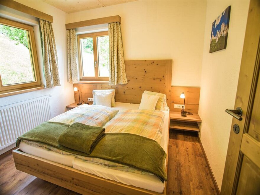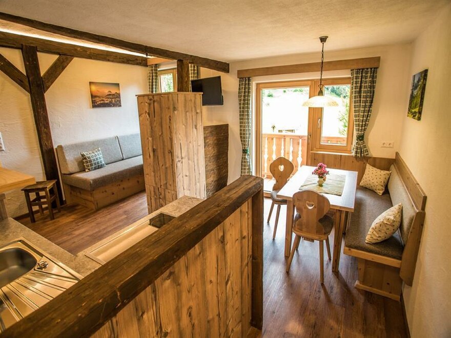 asza aplikacja. Lärche ma 1 sypialnię (podwójne łóżko) i 1 sypialnię (2 pojedyncze łóżka), w pełni wyposażoną kuchnię i przytulny salon, prysznic i toaletę, a także telewizję satelitarną w każdym pokoju. Darmowe Wi-Fi. W naszych nowych mieszkaniach przetwarzano dużo drewna i kładziono duży nacisk na wygodę. Oferujemy również naszym gościom możliwość rezerwacji ze śniadaniem lub obiadokolacją. Serwis chleba z domowymi produktami do mieszkań.