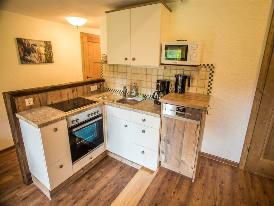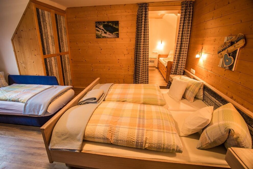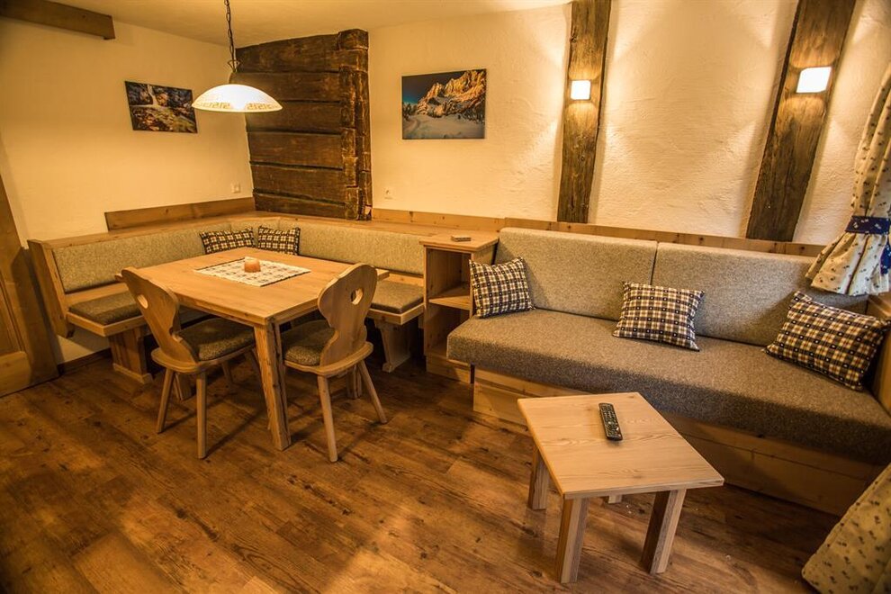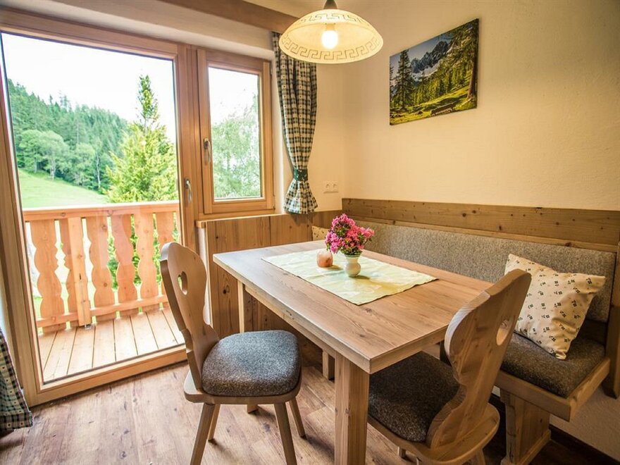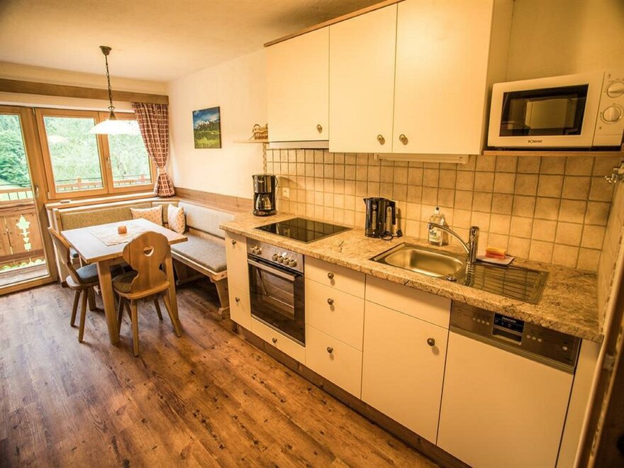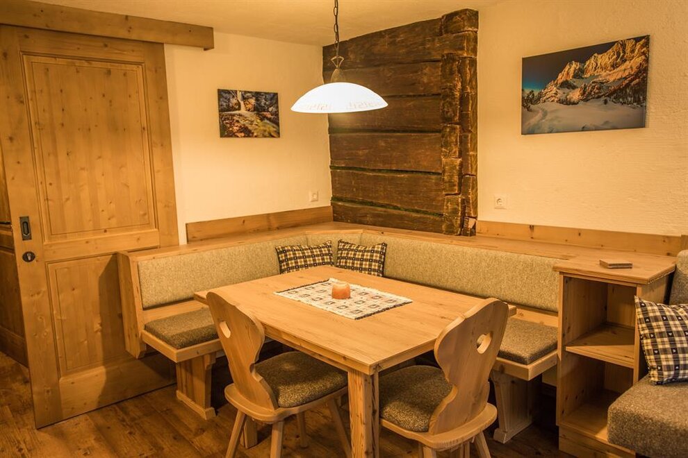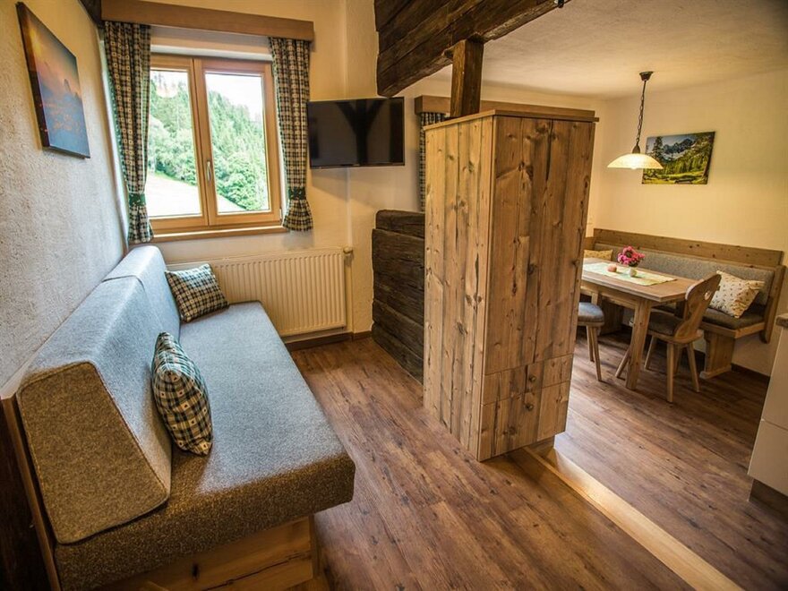 asza aplikacja. Lärche ma 1 sypialnię (podwójne łóżko) i 1 sypialnię (2 pojedyncze łóżka), w pełni wyposażoną kuchnię i przytulny salon, prysznic i toaletę, a także telewizję satelitarną w każdym pokoju. Darmowe Wi-Fi. W naszych nowych mieszkaniach przetwarzano dużo drewna i kładziono duży nacisk na wygodę. Oferujemy również naszym gościom możliwość rezerwacji ze śniadaniem lub obiadokolacją. Serwis chleba z domowymi produktami do mieszkań.