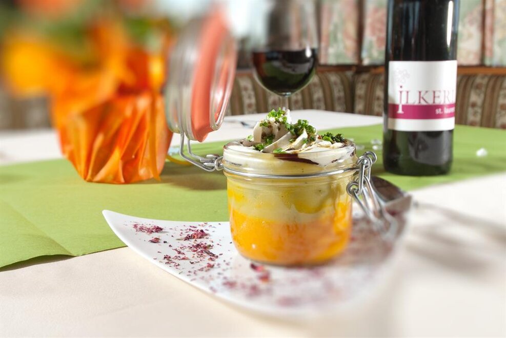 Rano rozpieszczamy Państwa obfitym bufetem śniadaniowym z regionalnymi produktami. Rozkosze kulinarne czekają na Państwa wieczorem i w południe w naszej restauracji à la carte. Nasze steiermärkowskie smakołyki oraz międzynarodowe przysmaki przygotowywane są z świeżych produktów z regionu.