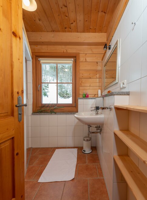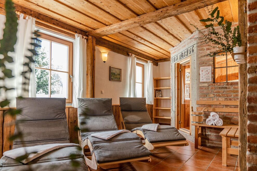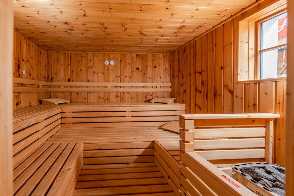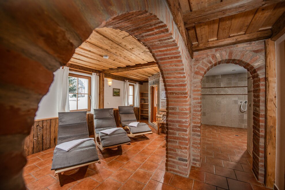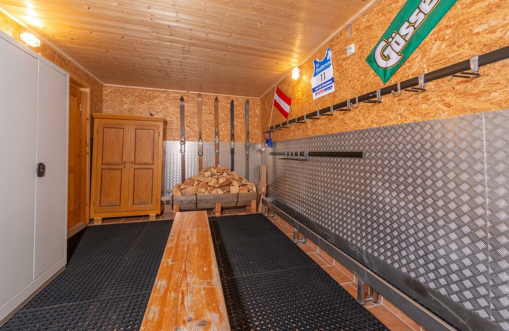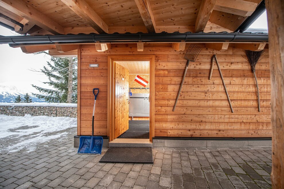 Na parterze znajduje się około 50 m² obszaru wellness z sauną z cedrowego drewna, sauną cieplną, pokojem relaksacyjnym oraz przestronną strefą prysznicową z wiadrami na wodę. Zafunduj sobie chwilę relaksu po pełnym wrażeń dniu w regionie wakacyjnym Schladming-Dachstein. Przed domem znajduje się duża, częściowo zadaszona przestrzeń z grillem ze stali nierdzewnej i naszą gondolą, idealna na przyjemne wieczory grillowe. Ciesz się zapierającym dech w piersiach widokiem!