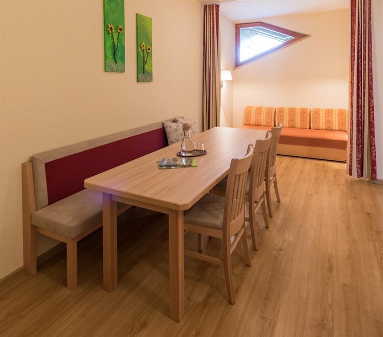 Apt suite Schladming, starannie wyremontowane wiosną 2016 roku, składa się z sypialni, łazienki z toaletą oraz przytulnego salonu. Sypialnia zachęca do wypoczynku i zbierania sił dzięki wykonanym na zamówienie meblom z drewna cyprysowego. Jest wyposażona w podwójne łóżko z wysokiej jakości materacami relaksacyjnymi z certyfikatem QUL, telewizję kablową i balkon. W łazience znajduje się umywalka, prysznic, toaleta, przestronny grzejnik na ręczniki oraz wydajna suszarka do włosów. Salon dysponuje przytulnym kącikiem do siedzenia z stołem, telewizorem na płaskim ekranie, ekspresem do kawy oraz kanapą (możliwość dodatkowych 4 miejsc do spania). Cała suite posiada ogrzewanie podłogowe oraz bezpłatne WiFi.